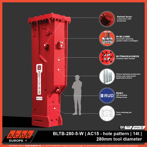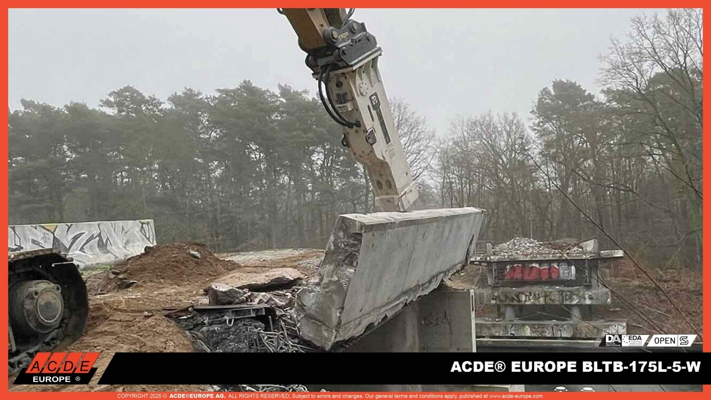 ACDE® Europe bietet ein vollständiges Anbaugeräte-Ökosystem – von Hämmern und Brechern über Schmiersysteme, Monitoring und Adapterlösungen – und ermöglicht damit einen schnelleren, sichereren und wirtschaftlich erfolgreichen Brückenrückbau.