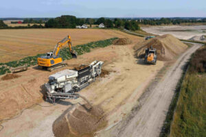 Ein praktisches Beispiel aus Dänemark zeigt, was möglich ist: Das Bauunternehmen SR-Gruppen A/S setzt seit Sommer 2024 auf die vollelektrische Sieb- und Mischmaschine von Backers und bereitet damit direkt auf der Baustelle bis zu 80 % des Aushubs wieder auf. Das spart Ressourcen, reduziert Emissionen und senkt die Baukosten spürbar.