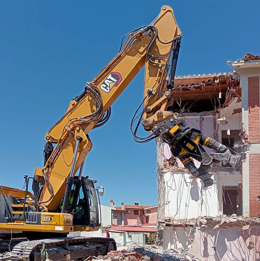 In Sassari begann die Stadterneuerung des Sacro Cuore-Viertels mit dem Abriss eines dreistöckigen Gebäudes in der Via Mascagni. Eine innerstädtische Baustelle, umgeben von Nachbargebäuden und mit der Notwendigkeit, ohne Beeinträchtigungen zu arbeiten. Im Einsatz: ein CAT-323-Bagger, ausgestattet mit der Abbruchzange MB-PT1650. Der Rückbau erfolgte von oben nach unten, indem die Struktur schrittweise demontiert wurde.