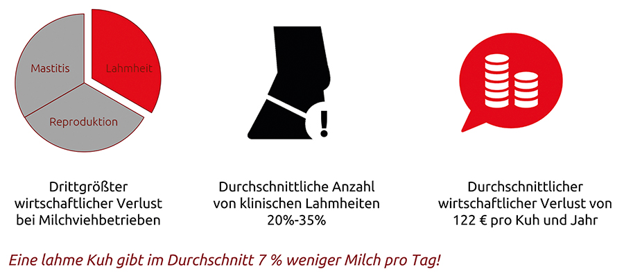 Der Ansatz steht für die richtige Kombination dieser Säulen und verfolgt eine Nulltoleranzpolitik gegenüber Klauenerkrankungen. Es berücksichtigt dabei alle Ursachen und Einflussfaktoren auf Deinem Betrieb, um eine nachhaltige Verbesserung zu gewährleisten. Häufig wird die Klauengesundheit unterschätzt und erst reaktiv behandelt, was dazu führen kann das die Milchleistung und das Wohlbefinden Deiner Kühe sinkt.