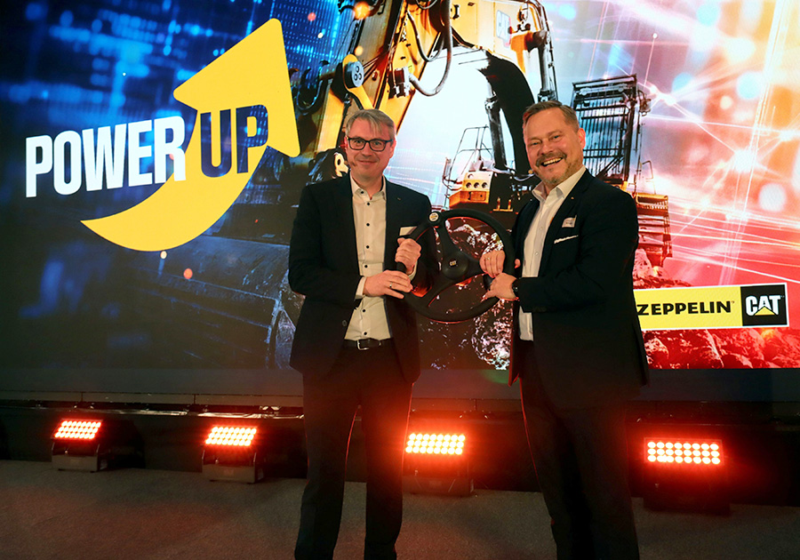 Holger Schulz (rechts), Vorsitzender der Geschäftsführung von Zeppelin Baumaschinen, übergibt das Steuer an Stefan Besendorfer, der seit Jahresanfang im Unternehmen Vertrieb und Marketing leitet. Foto: Zeppelin