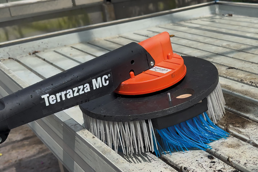 Dank der patentierten Bürstentechnologie entfernt der Greeny PRO® mühelos Ablagerungen und organischen Schmutz, selbst die Ablaufrinnen werden dabei nicht vergessen. So bleibt die Oberfläche vollständig sauber, ohne dass die Tische beschädigt werden.