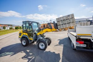 Ebenfalls mit auf der Bauma ist der neue kompakte Radlader 5045. Der Radlader überzeugt mit der Kombination aus geringem Eigengewicht und hoher Nutzlast. Mit einem Betriebsgewicht von ca. 2.600 Kilogramm kann der 5045 auf einem 3,5-Tonnen Anhänger (mautfrei) transportiert werden. Das spart nicht nur Zeit, sondern steigert auch die Maschinenauslastung. Das Verfahren von handelsüblichen Pflastersteinpaletten oder Steinpaketen sowie das Be- und Entladen von LKWs ist für den 5045 mühelos machbar. Die hohe Leistung bei kompakten Abmessungen erweitert das Einsatzspektrum für Einsätze in beengten Bereichen wie z. B. Tiefgaragen, Parkhäusern. Je nach Bedarf stehen zwei Motorvarianten zur Auswahl, standardmäßig ein 19 kW Motor und optional ein 33 kW Motor, mit dem bis zu 30 km/h gefahren werden kann. Zudem zeigt Kramer einen Querschnitt des aktuellen Maschinenportfolios, darunter auch die leistungsstarken Radlader der 8er-Serie, die mit ihrem effizienten Fahrantrieb neue Maßstäbe in Sachen Kraftstoffverbrauch setzt.
