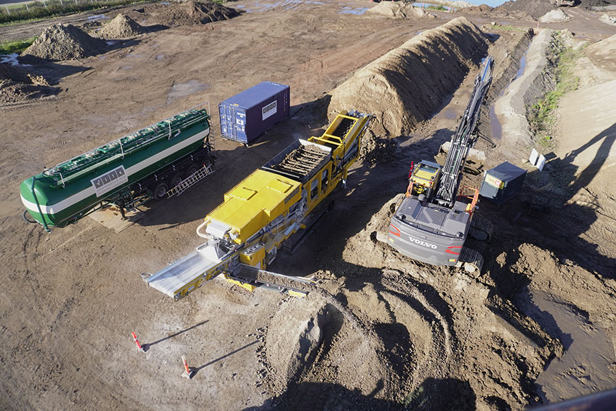 Damit eignet sich die Maschine ideal für Bodenstabilisierung, Flüssigbodenproduktion und die Siebung von Recyclingbaustoffen.
