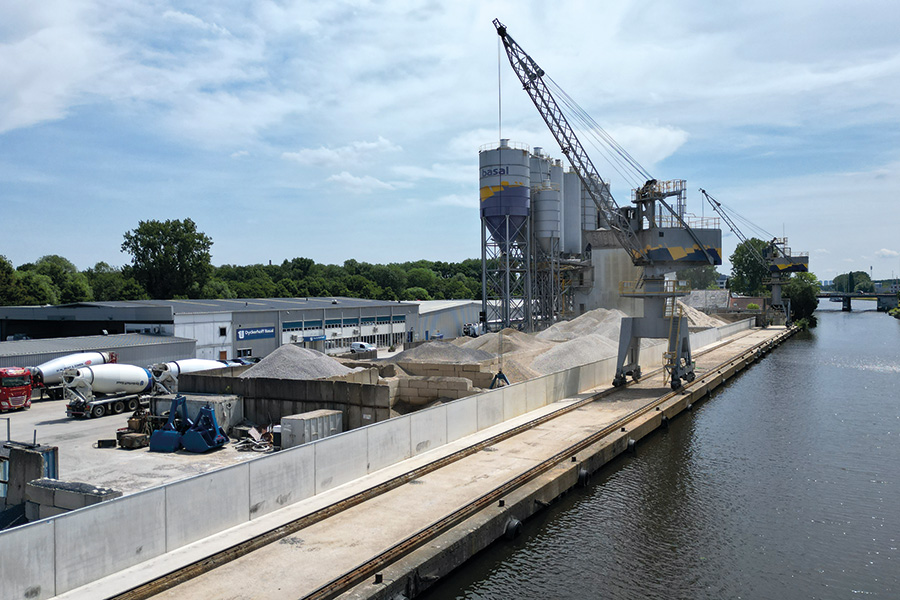Um den Druck der gelagerten Rohstoffe kontrollierbar zu halten, wurde das Modell L250 HAK gewählt, das etwa einen halben Meter abgesenkt installiert wurde und so eine nutzbare Höhe von zwei Metern erreicht. Die L-Stützwand mit Fuß ist speziell für mittlere Belastungen im Tief-, Straßen- und Wasserbau entwickelt worden. Durch die senkrechte Rückseite entsteht eine gerade, maßhaltige Stützmauer. Mit einer Lebensdauer von mindestens fünfzig Jahren bietet diese Lösung zudem Nachhaltigkeit und Zuverlässigkeit