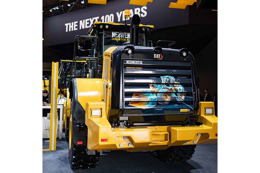 Der ausgestellte Radlader stammt aus dem Baujahr 2022 und hatte 3 159 Betriebsstunden absolviert. Sein noch junger und gepflegter Zustand überzeugte das Unternehmen BMS Bor-wede aus Twistringen, auf der bauma bei Christian Eger, Verkäufer der Zeppelin Niederlassung Westerstede, einen Spontankauf zu tätigen. Er hatte Maike Gerdts und Udo Wehmeyer die Maschine empfohlen. Sie mussten nicht lange überlegen, als sie durch das Hallentor traten und ihnen sofort der Radlader in der 19-Tonnen-Klasse unter den 50 ausgestellten Messeexponaten auffiel.