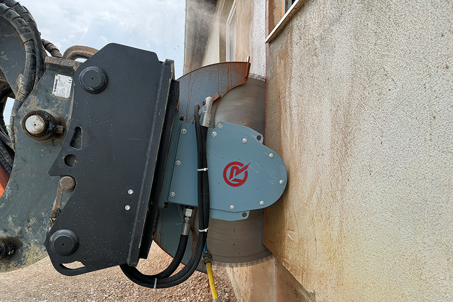 Im zweiten Schritt folgten massive, teilweise armierte Betonwände, die eine deutlich höhere Materialdichte aufwiesen. Die eingesetzte ROCKSAW X20 montiert an einem 19t Bagger mit Diamant-Sägeblatt 1200mm, trennte das Material mit hoher Präzision – ohne Ausbrüche und ohne Vibrationen in angrenzende Bauteile zu übertragen.
