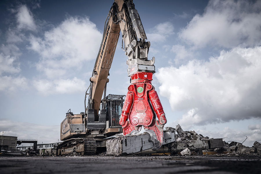 Rotar, niederländischer Hersteller von Anbaugeräten für Abbruch und Recycling, hat seine Serie der Betonscheren um brandneue XL-Modelle erweitert. Diese bestechen durch die einzigartige „Ramplifier-Technologie“, welche die Zylinderleistung bei Bedarf verdoppelt und zu besonders hohen Schneidkräften führt.
