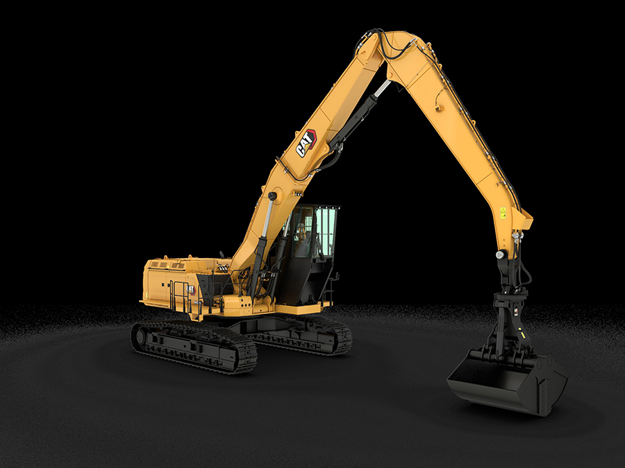 Mit der SmartBoom-Technologie lassen sich Ausleger und Stiel bewegen, ohne Pumpenleis-tung zu beanspruchen. Es wird immer so viel Hydraulikdruck aufgebaut, wie gerade benötigt wird. Eine Vielzahl von Cat Anbaugeräten steht zur Verfügung, um mit unterschiedlichen Ma-terialien zu hantieren. Serienmäßig ist die Funktion der Nahbereichsabschaltung (CabAvoidance), um einen Kontakt zwischen Anbaugerät und Kabine zu verhindern.