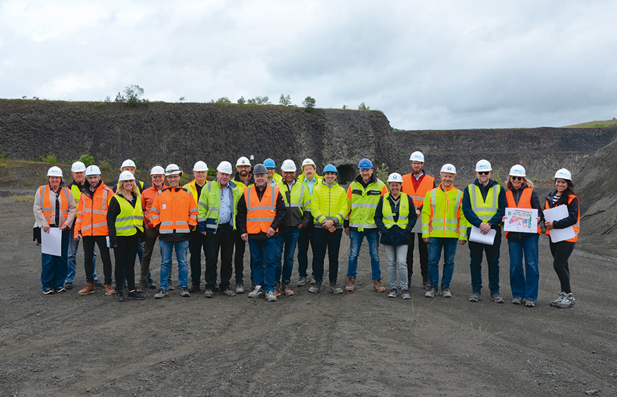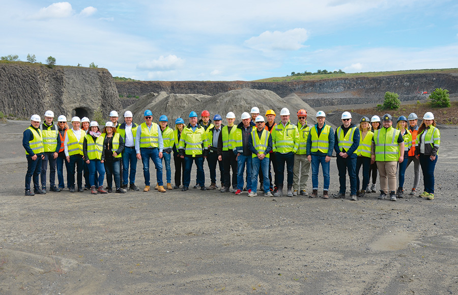 „Hello again“ hieß es an zwei Tagen Ende Mai in Nieder-Ofleiden, der Heimat der Demo-Show im „Bruch“. Auf Einladung der veranstaltenden GEOPLAN GmbH kamen dort rund 50 Vertreterinnen und Vertreter führender ausstellender und interessierter Unternehmen zusammen. Andrea Friedrich, Geschäftsführerin der veranstaltenden GEOPLAN GmbH und Dominik Rese, ebenfalls Geschäftsführer sowie steinexpo Messe-Chef, informierten die Anwesenden im industriellen Ambiente der Halle 17 in Homberg (Ohm) über die geplanten Neuerungen und das aktuelle Messegelände. Ein Punkt des „Facelift“ betrifft das Logo der steinexpo: Es ist nun deutlich moderner, dynamischer und geradliniger – und damit noch besser auf die Branche ausgerichtet. Das Markenzeichen der Messe ist die Demonstration außergewöhnlicher Maschinen in einem aktiven Steinbruch, den die Teilnehmer im Anschluss an den informativen Teil besuchten. Aktiv bedeutet eben auch fortlaufende Veränderung, daher muss Europas größter Basaltsteinbruch zu jeder steinexpo neu konzipiert und gestaltet werden.