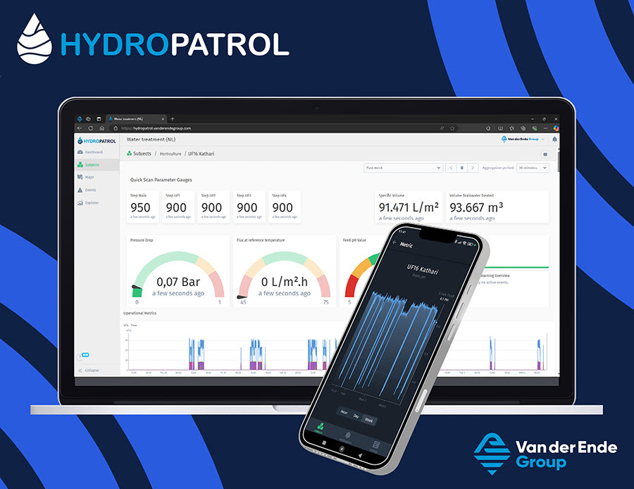 Van der Ende Group introduces HydroPatrol, an advanced software platform for monitoring and optimizing water treatment systems, like the Kathari or the Nexus. With HydroPatrol, users have real-time insight into the performance of their installation and can act quickly on deviations and malfunctions. This increases operational reliability and helps optimize maintenance schedules.