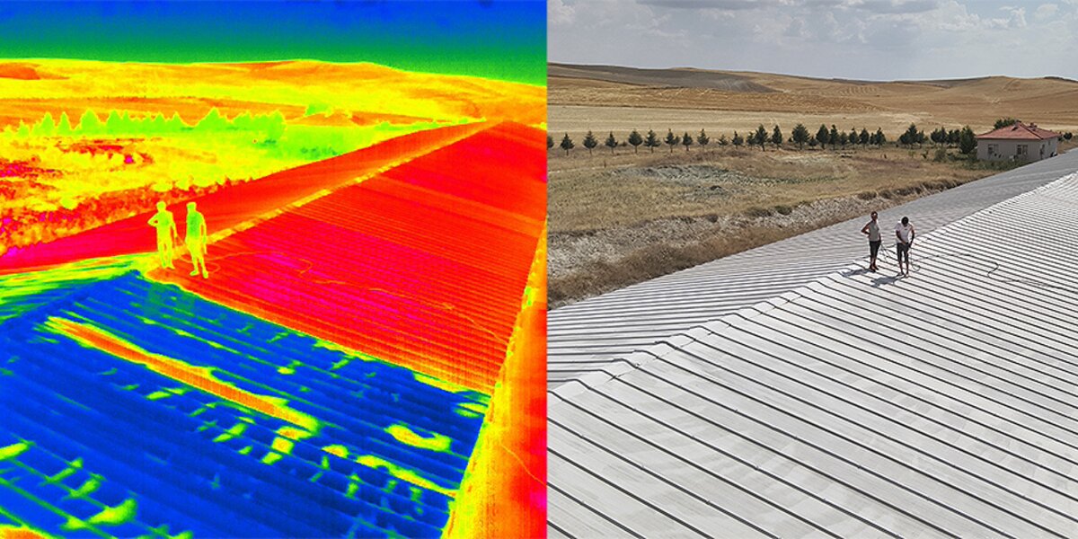 You can clearly see, with the help of a thermal camera, how the surface temperature changes after an application. Even with a white roof!