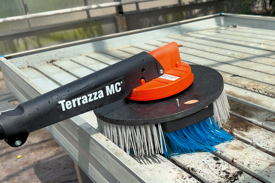 The Greeny PRO® is your go-to solution for efficient, eco-friendly cleaning of nursery tables. Thanks to its patented brush technology and ergonomic design, the Greeny PRO® removes moss, algae and dirt without using high pressure or chemicals. That means no damage to surfaces and no harm to the environment.