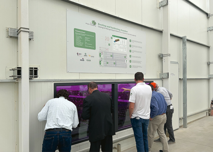 The new facility is designed to enable more efficient and ergonomic work processes. This has resulted in a 20% increase in labor productivity, supported by automated spray booms and internal transport systems. Activities such as sticking, sorting, and shipping have been centralized, improving both water application precision and overall efficiency.
