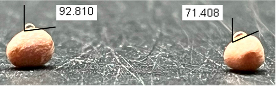 Fig. 3: Water droplets adhering to the surface of ActivatedAir-treated and untreated pea seeds