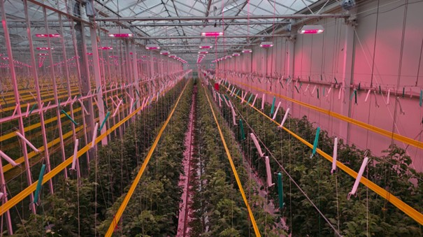 The study was conducted in a 500 m² greenhouse compartment with a fully grown high-wire tomato canopy. The LEDFan system alternated between “on” and “off” every three days simulating standard LED without active cooling to allow for comparisons of LEDFan’s effects.
