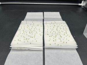 Figure 2. Germination Testing of Lettuce. An image was taken to show the germination difference between ActivatedAir-treated seeds (right) and non-treated seeds (left).