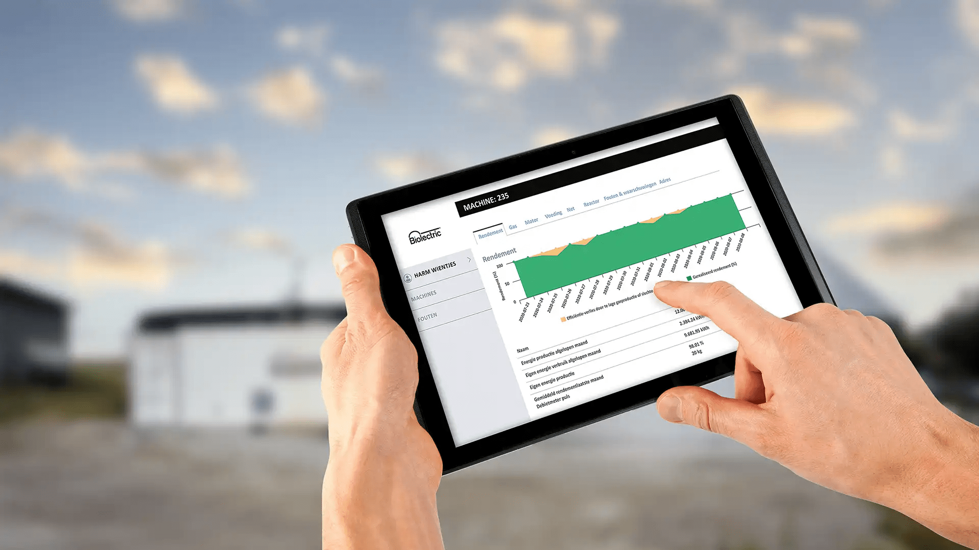 Met een WKK (warmtekrachtkoppeling) zet je biogas om in elektriciteit en warmte.
