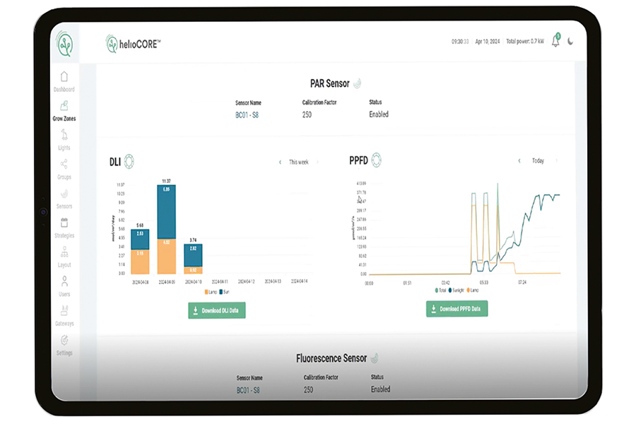 Met helioCORE™ past de verlichting zich automatisch aan de omstandigheden aan. HelioCORE™ houdt rekening met energieprijzen, weersvoorspellingen en gewasbehoeften, zodat u kosten bespaart zonder productie te verliezen. Draadloze spectrumregeling en onbeperkte zones geven u de flexibiliteit om verschillende lichtstrategieën in verschillende zones toe te passen. U verspilt minder, verlaagt de kosten en houdt elk gewas op koers.