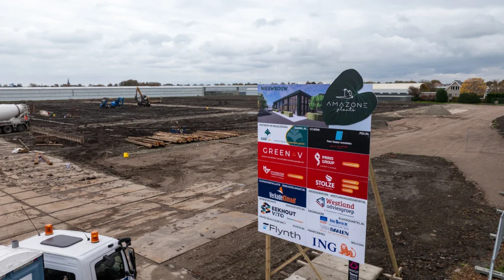 In Honselersdijk wordt gewerkt aan de nieuwste uitbreiding van Amazone Plants: een moderne kas van 1,6 hectare die de groeiambitie van het bedrijf ondersteunt.