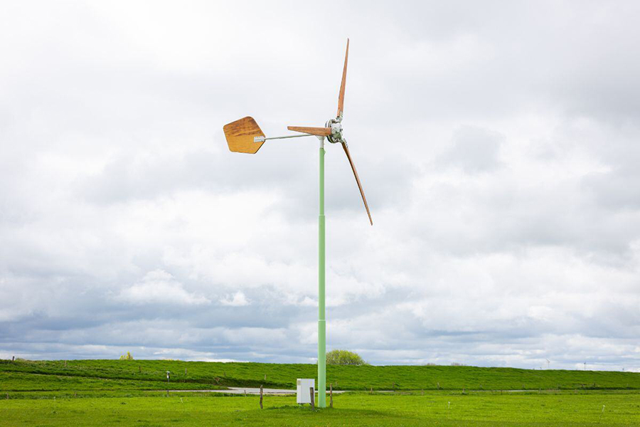 Niet alleen de locatie, maar ook de materialen spelen een rol in onze ecologische verantwoordelijkheid. Daarom produceren wij de kleine windmolen met duurzame, lokale grondstoffen. De wieken worden gemaakt van larikshout uit de bossen van Staatsbosbeheer, de staart van berkenhout en de mast van Nederlands staal. Dankzij deze materiaalkeuze is de molen uitstekend te reviseren en zijn vrijwel alle onderdelen herbruikbaar.