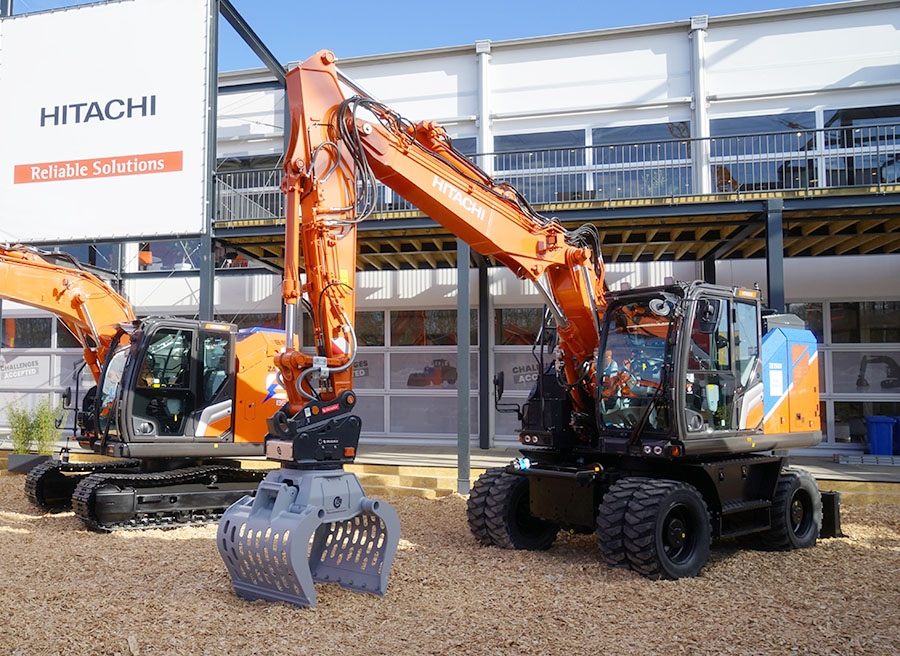 Uiteraard mogen de mobiele graafmachines niet vergeten worden, want ook op dat vlak heeft Hitachi een naam hoog te houden. Naast de al genoemde elektrische ZE150W – een prototype van 15,5 ton dat dankzij elektrische assen plus zwenkmotor 40% efficiënter omspringt met energie en zo’n 9,5 uur kan draaien op een accupakket van 300 kWh – kunnen bezoekers op de TKD zelf achter het stuur en de joysticks kruipen van een ZX135W-7 of ZX150W-7. Beide modellen beschikken over dezelfde Stage V dieselmotor, waardoor de compactere variant topprestaties en hoogwaardig comfort biedt in krappe werksituaties.