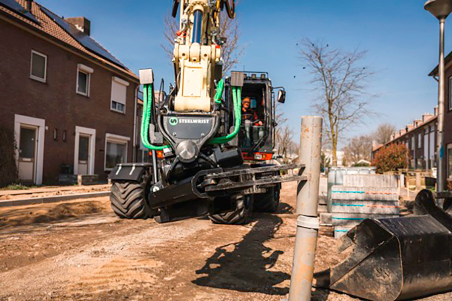 Een Steelwrist draaikantelstuk is uitgerust met een 360 graden draaibare functie en kan tweemaal 45 graden kantelen, waardoor graafwerkzaamheden sneller en efficiënter verlopen. Dankzij de massieve gietstalen constructie en het laagbouwontwerp biedt het draaikantelstuk optimale sterkte en stabiliteit. Snelle wisseling van uitrustingsstukken? Overweeg een Steelwrist snelwissel om nog makkelijker te wisselen tussen het draaikantelstuk en andere aanbouwdelen!