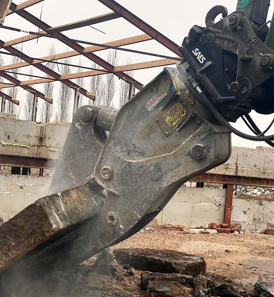 De VTN VF-serie (https://www.saes.nl/aanbouwdelen/vtn-aanbouwdelen/vf-1) is speciaal ontworpen voor het vergruizen van groot beton dat verfijnd moet worden. Dankzij de grote kaakopening in combinatie met het royale breekoppervlak resulteert dit in een ongeëvenaarde productiviteit. De bek is uitgerust met een unieke, geboute tandplaatconstructie, waardoor deze eenvoudig te vervangen is. Achterin de bek bevindt zich een snijmes voor het knippen van wapeningsstaal. Bovendien is de vergruizer voorzien van Hardox-bescherming: een speciaal, hard en slijtvast staallegering die minimale slijtage kent. De VF-serie is beschikbaar voor graafmachines van 7 tot 70 ton, waardoor er voor vrijwel elk project een passende uitvoering beschikbaar is.