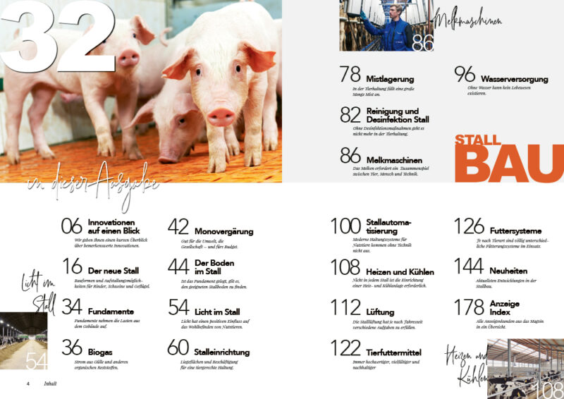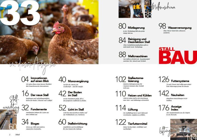 Stallbau wordt per post/digitaal verzonden naar agrariërs, die tijdens onze permanente enquête aangeven investeringsplannen te hebben binnen 1 à 1,½ jaar voor het (ver)bouwen van stallen in Duitsland , Zwitserland & Oostenrijk.
